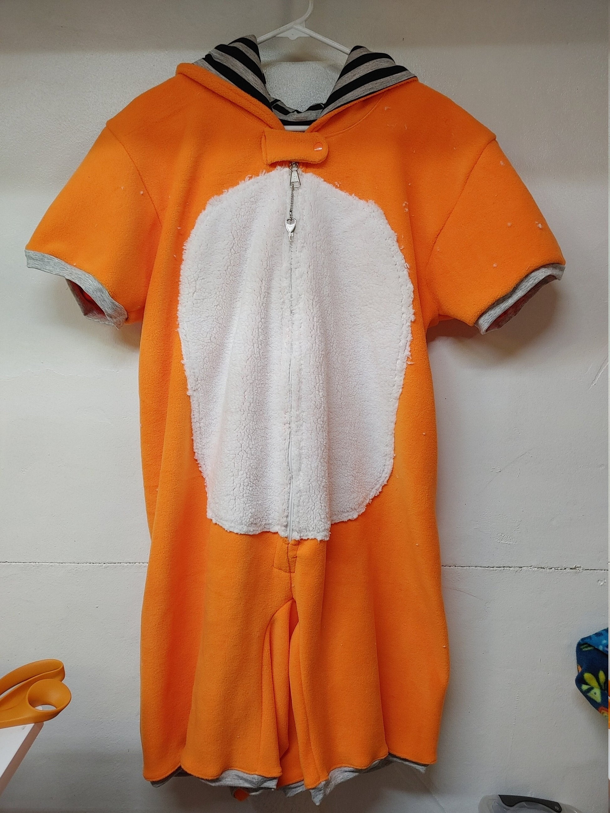 This is a custom order for a hooded fleece fox romper. It will have short sleeves, short legs, and a locking zipper up the front. It will also feature fluffy ears and a tail as the picture shows. :) Cuddle up on the couch in this adorable fox romper!