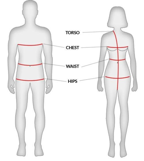 torso (basically all the way around starting at your shoulder, down to your crotch, and back up to your shoulder)